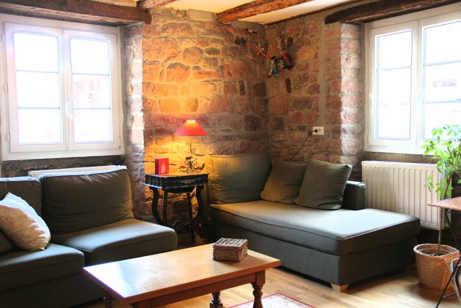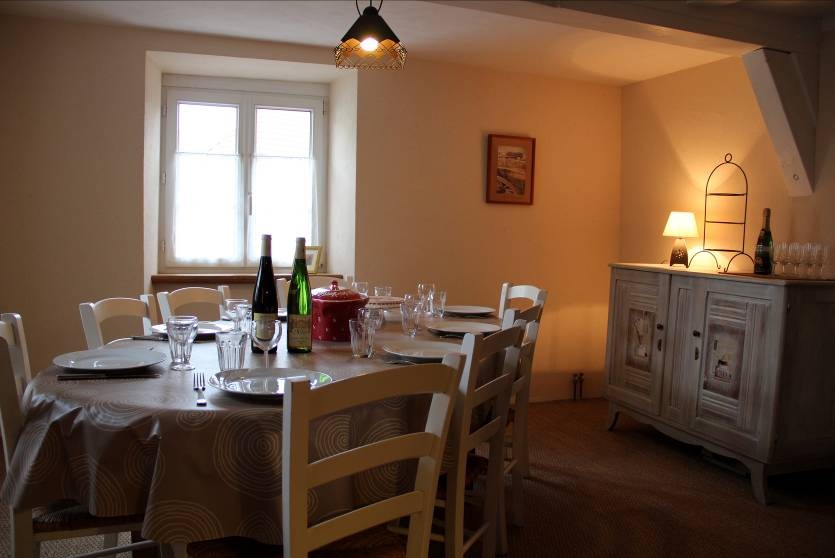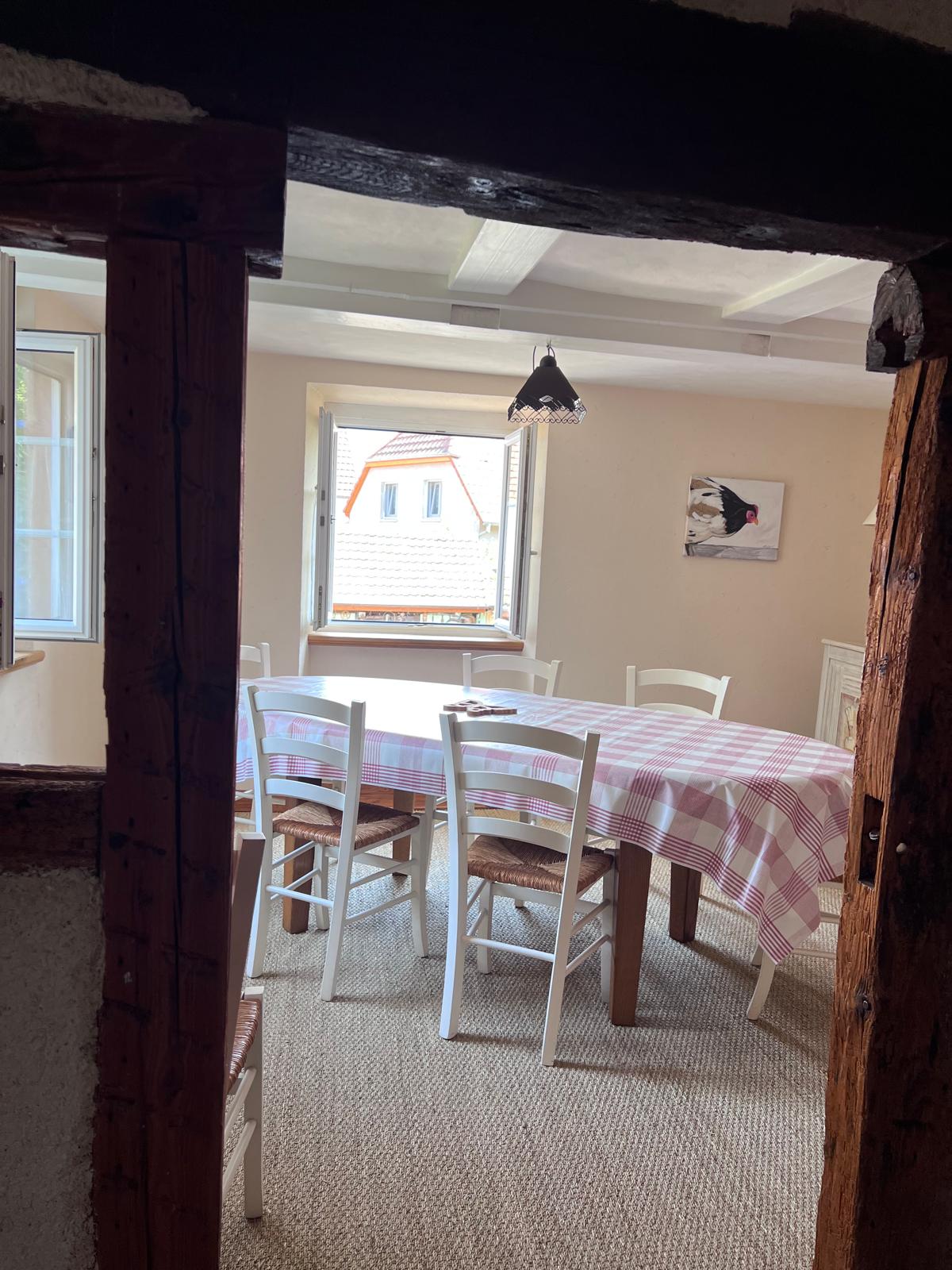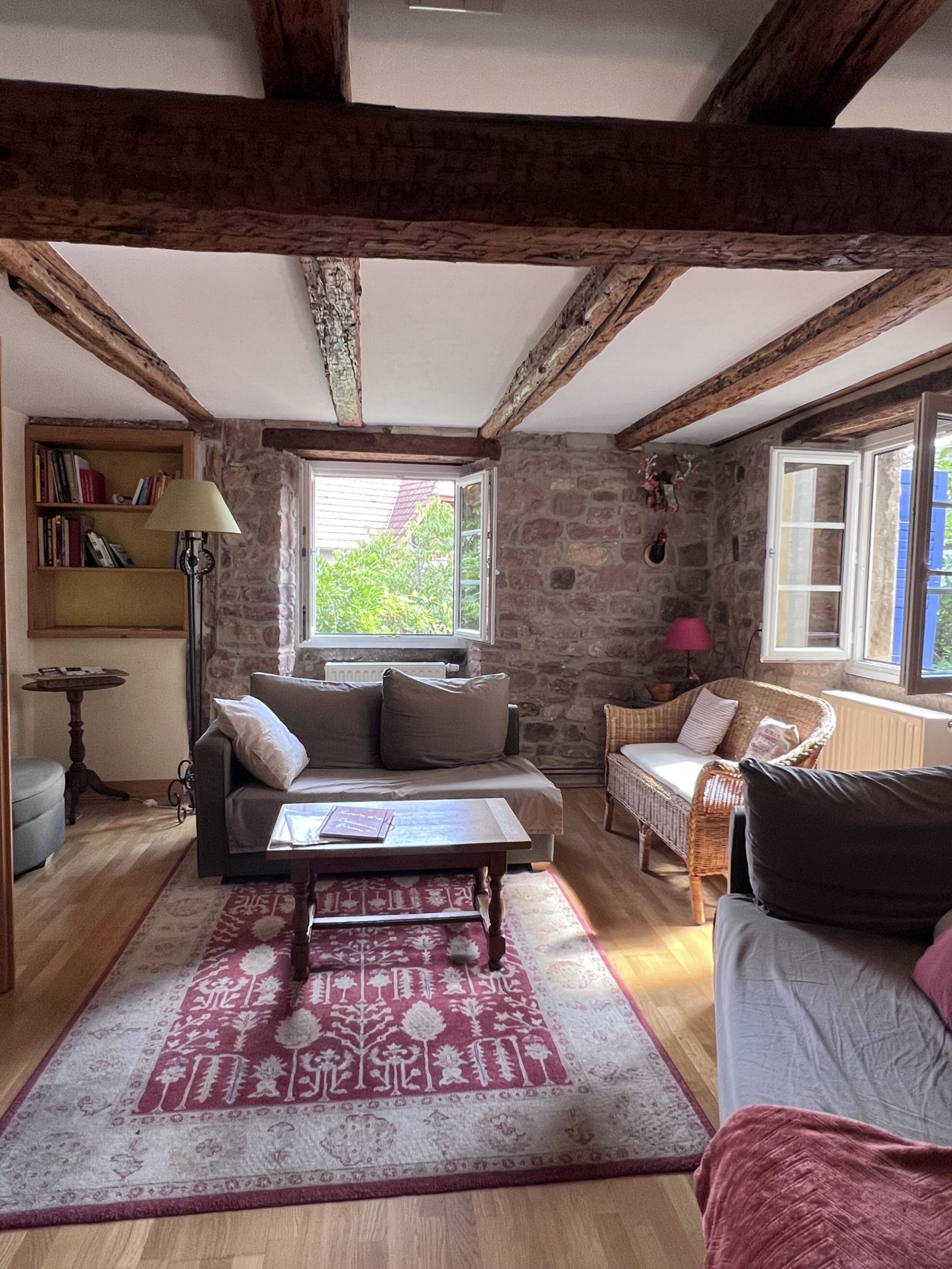 L’intérieur combine pierres apparentes, poutres en bois et mobilier confortable. Vous profiterez d’une atmosphère typiquement alsacienne, chaleureuse et authentique, parfaite pour des moments de partage.