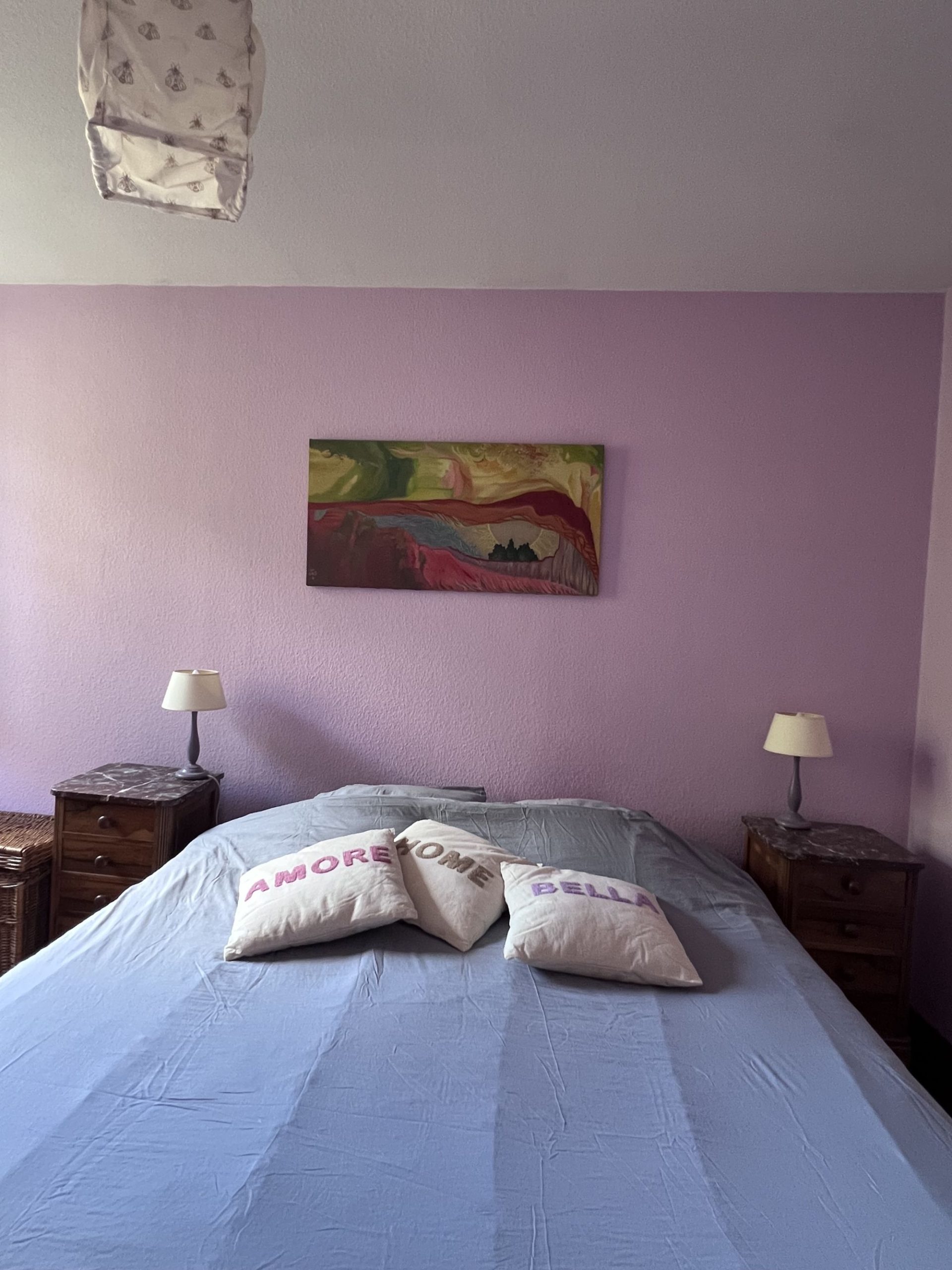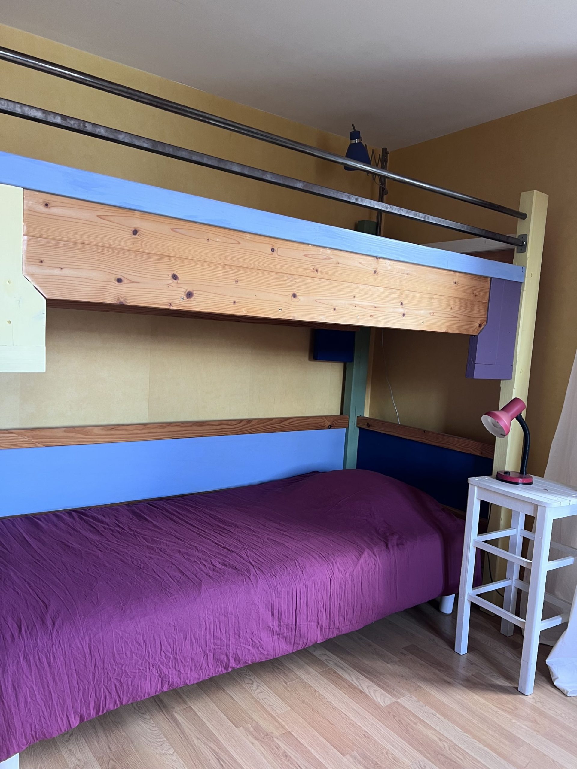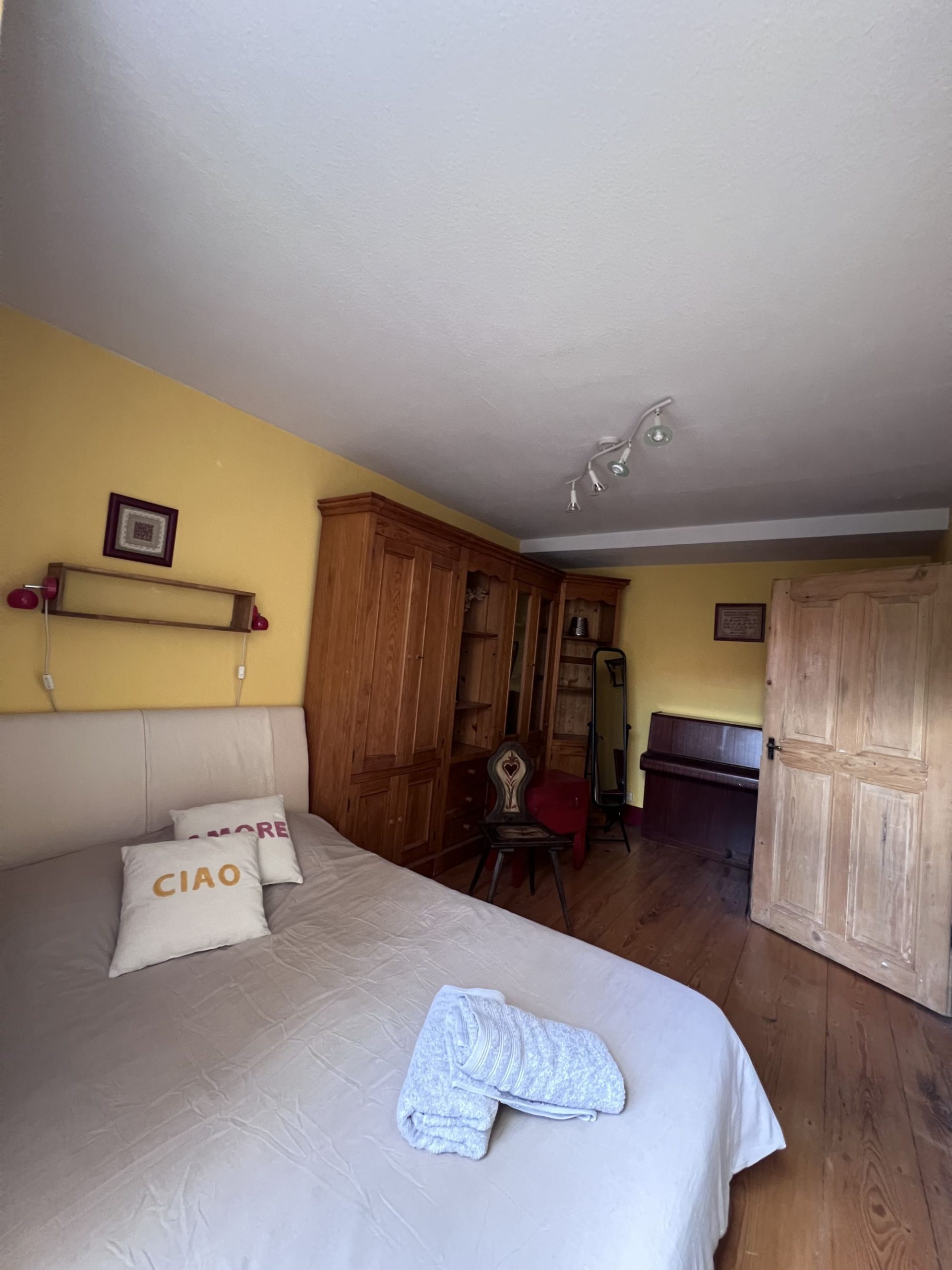 Cuisine : vaste plan de travail, four, micro-ondes, lave-vaisselle, réfrigérateur, table de cuisson avec 4 brûleurs au gaz, hotte, robot ménager, toute la vaisselle nécessaire, nombreux rangements.