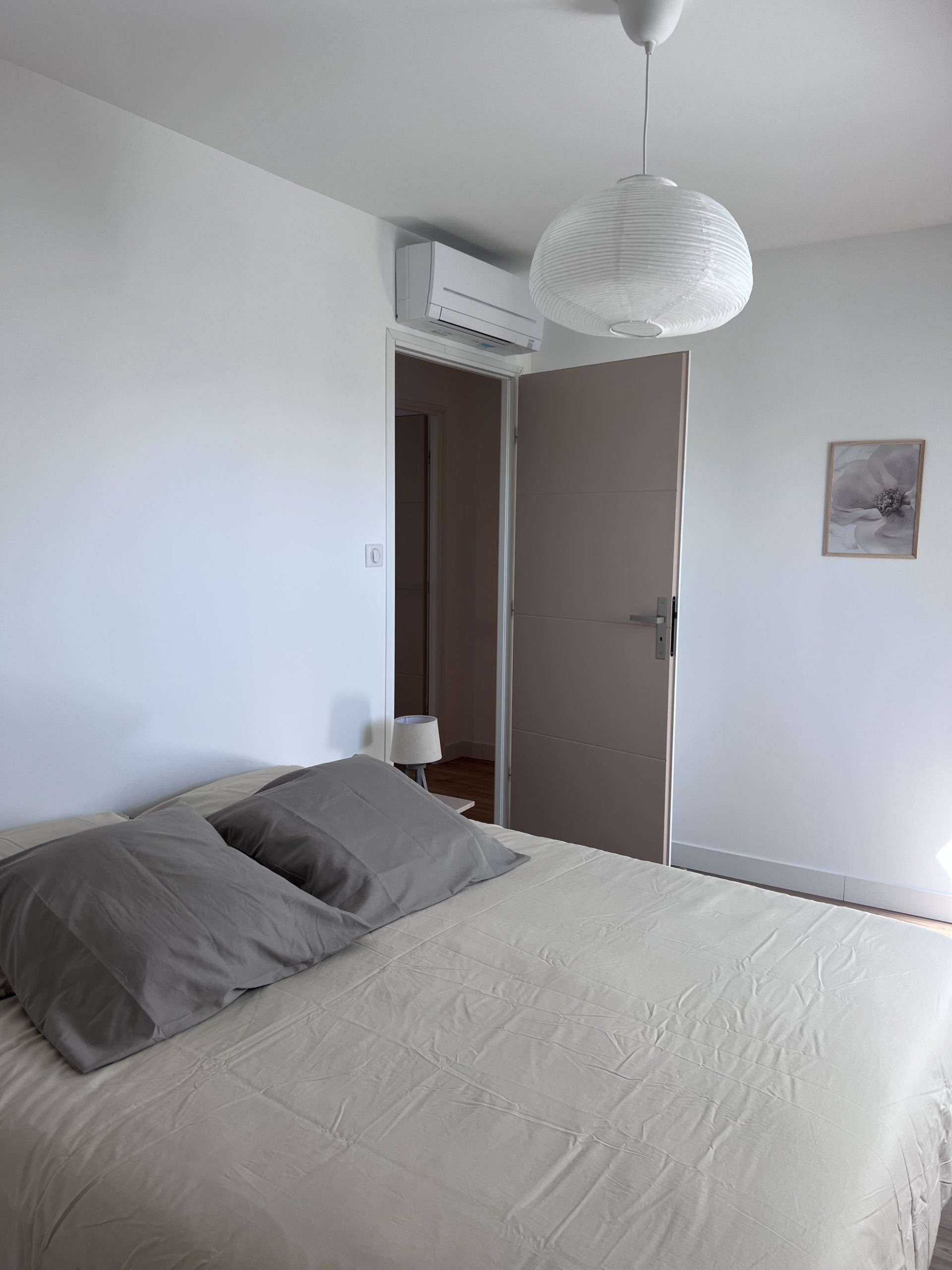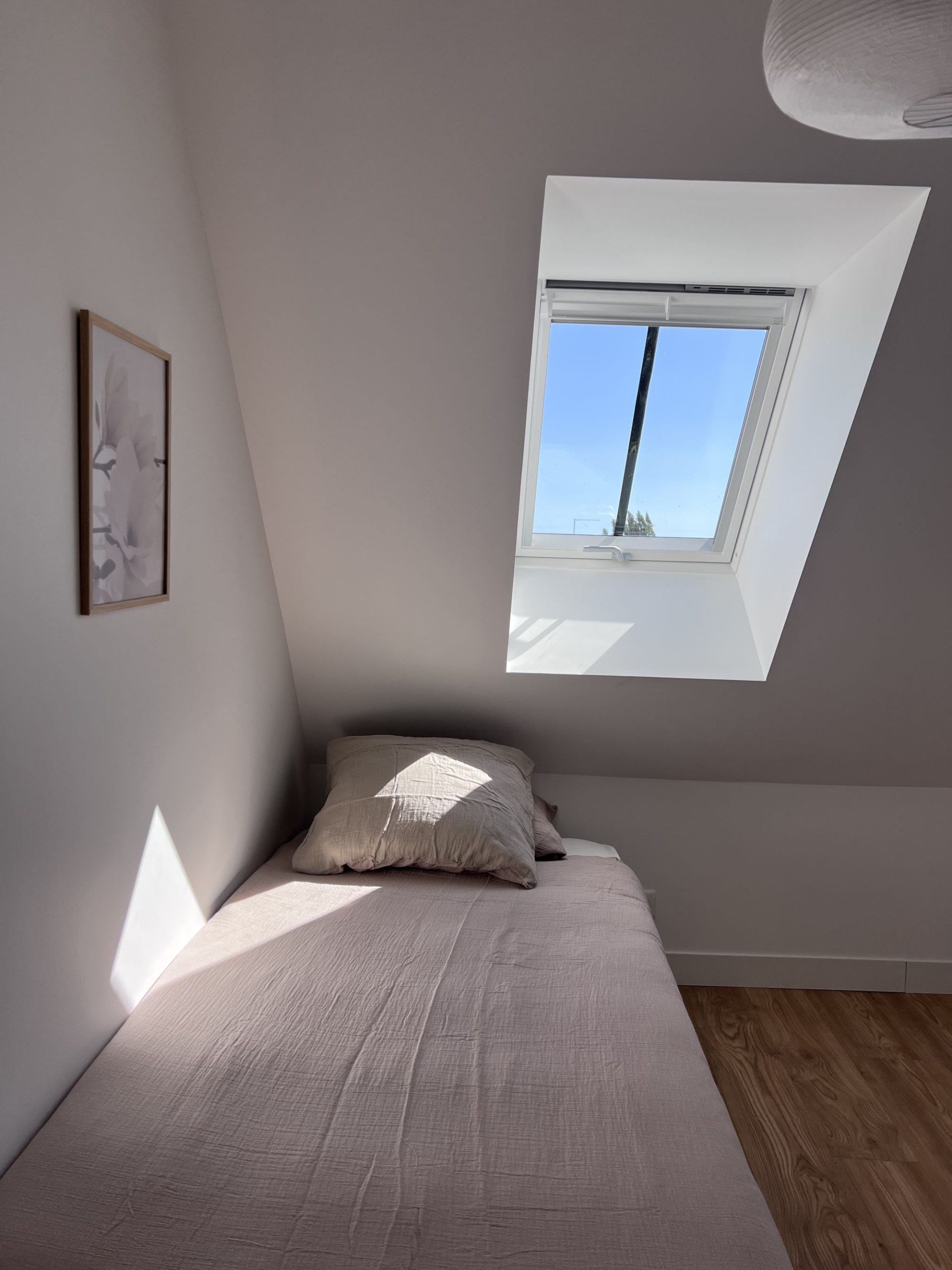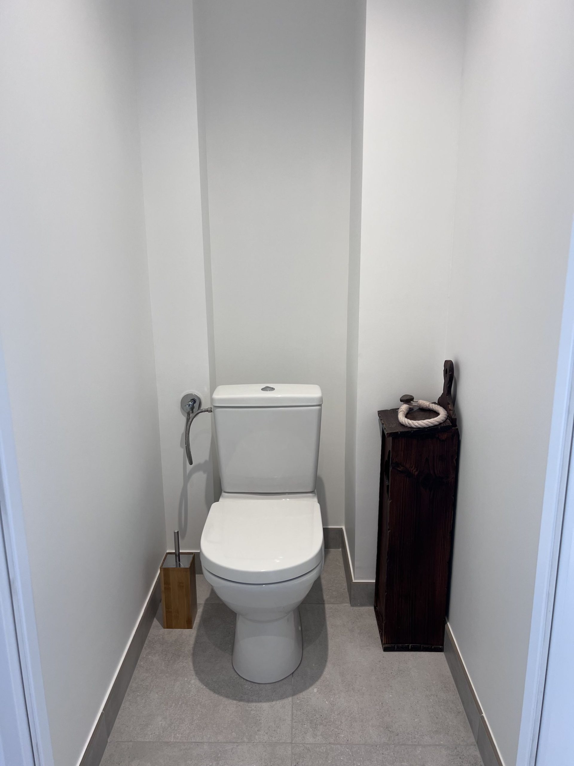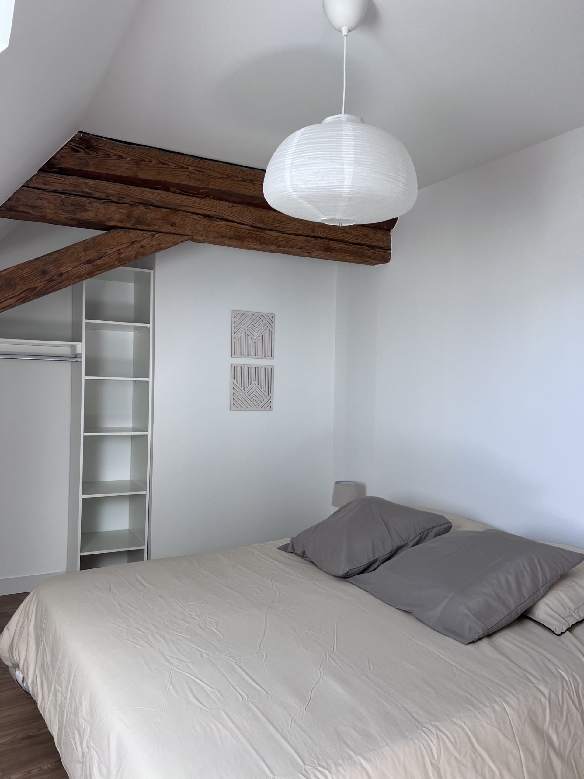 - 2e étage : une salle de bain spacieuse avec WC, une chambre avec lit double (160 cm), une chambre avec 2 lits simples et une suite parentale avec lit double (160 cm) et salle d’eau privative.