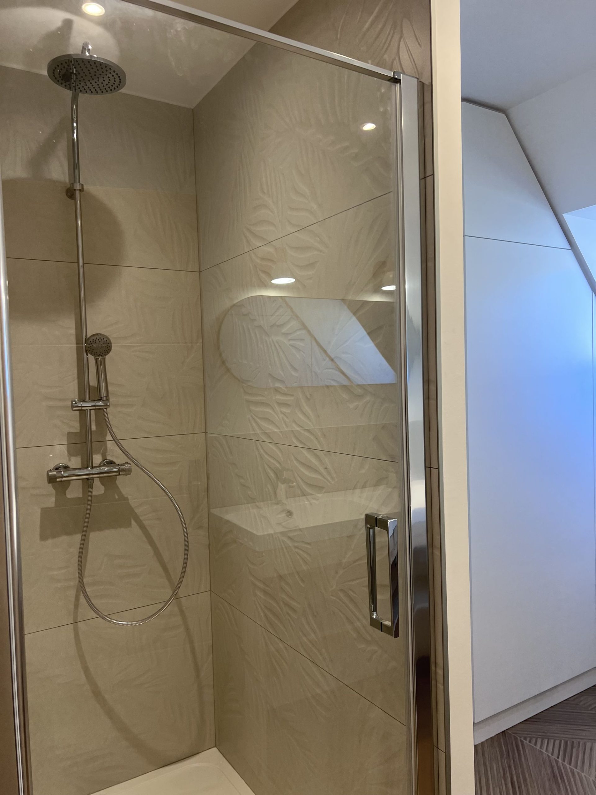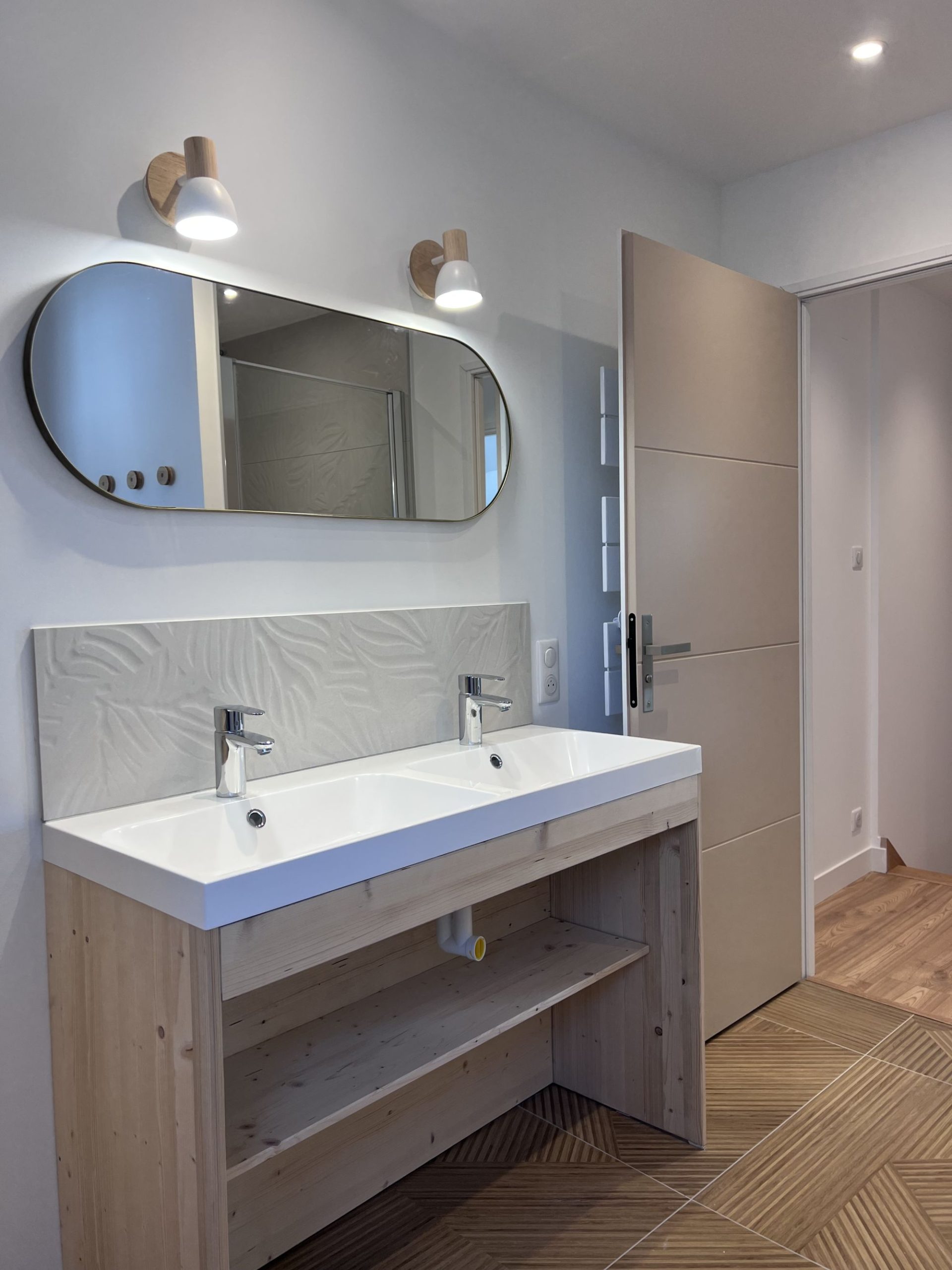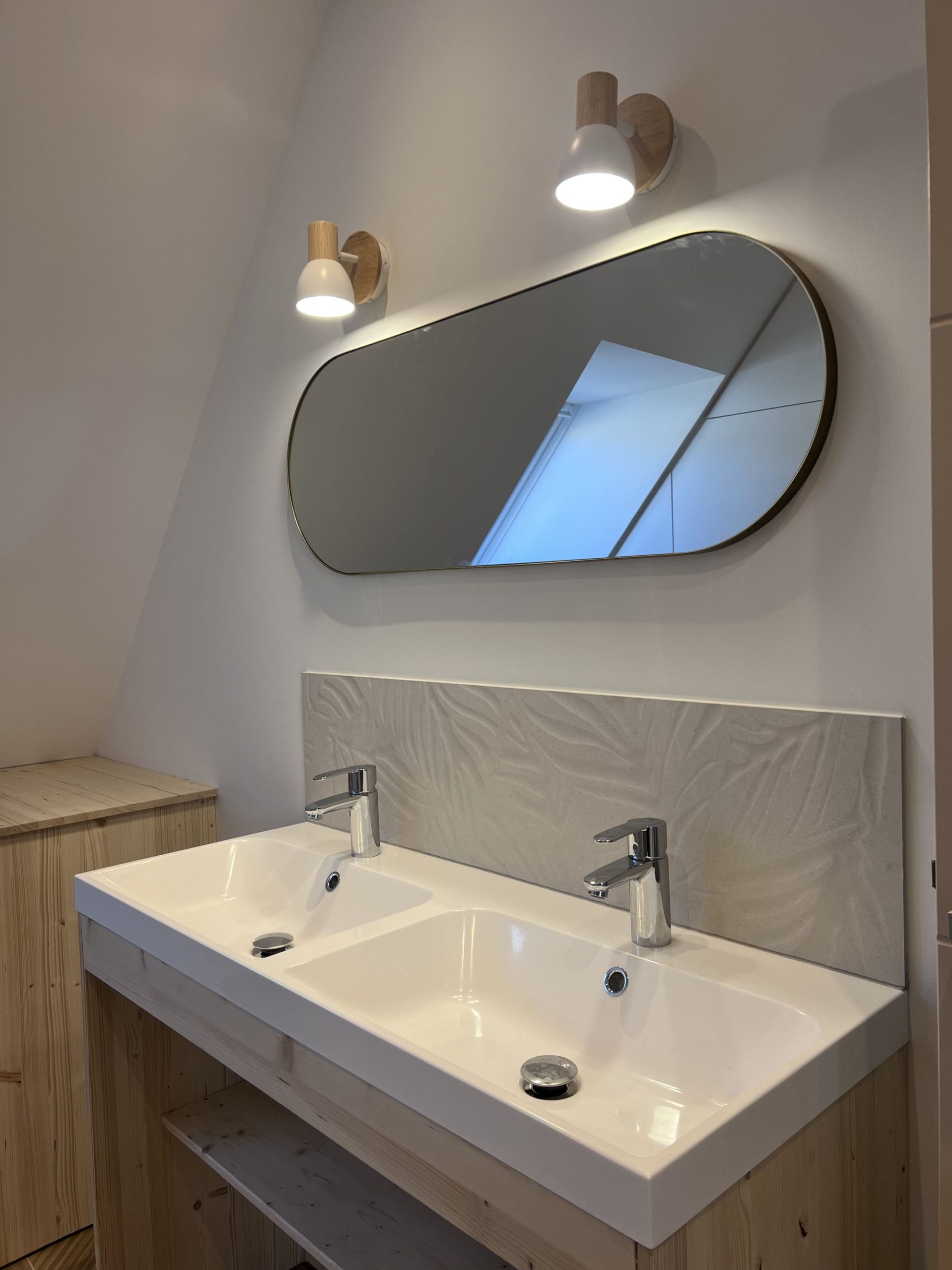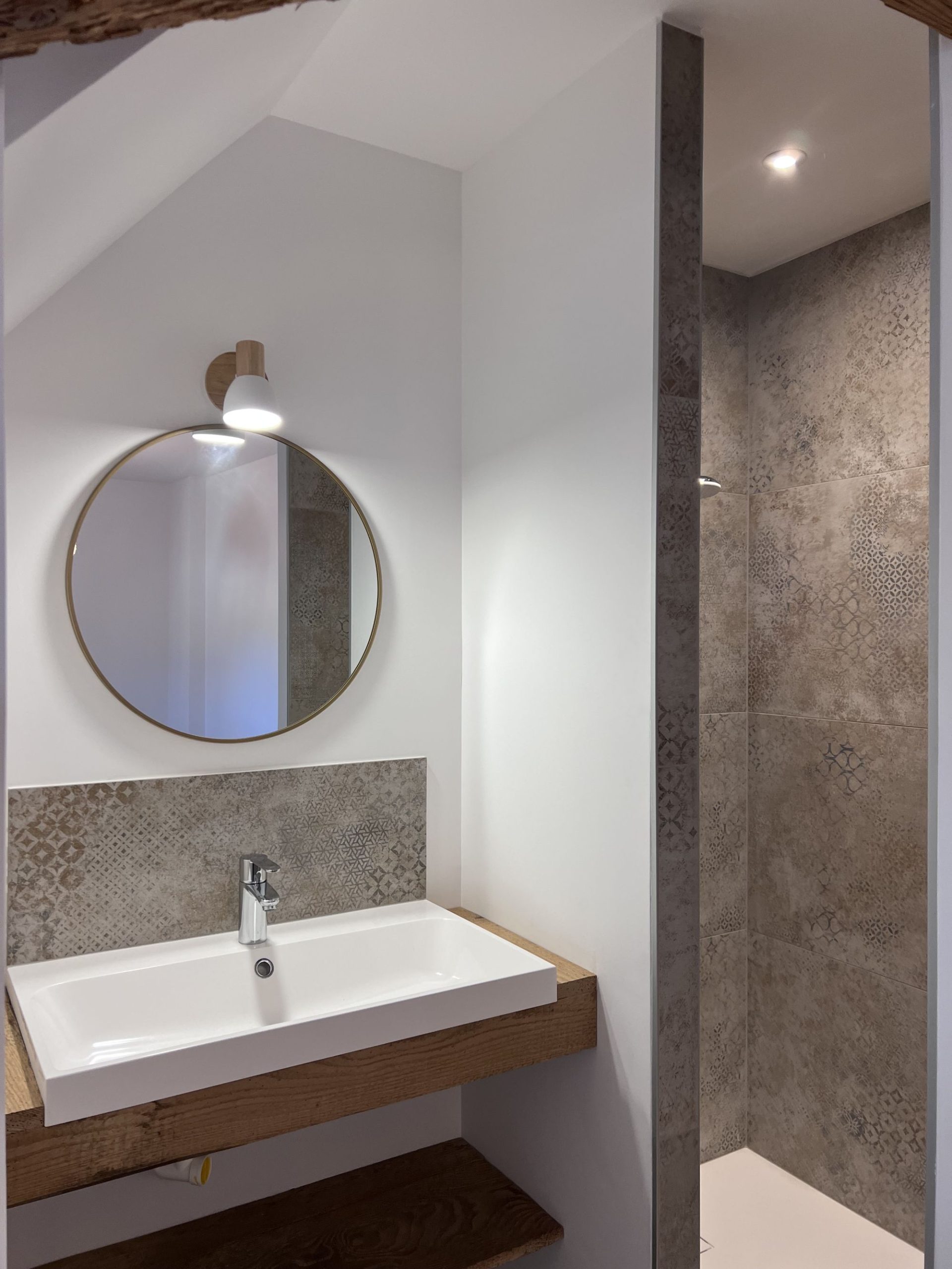- 2e étage : une salle de bain spacieuse avec WC, une chambre avec lit double (160 cm), une chambre avec 2 lits simples et une suite parentale avec lit double (160 cm) et salle d’eau privative.